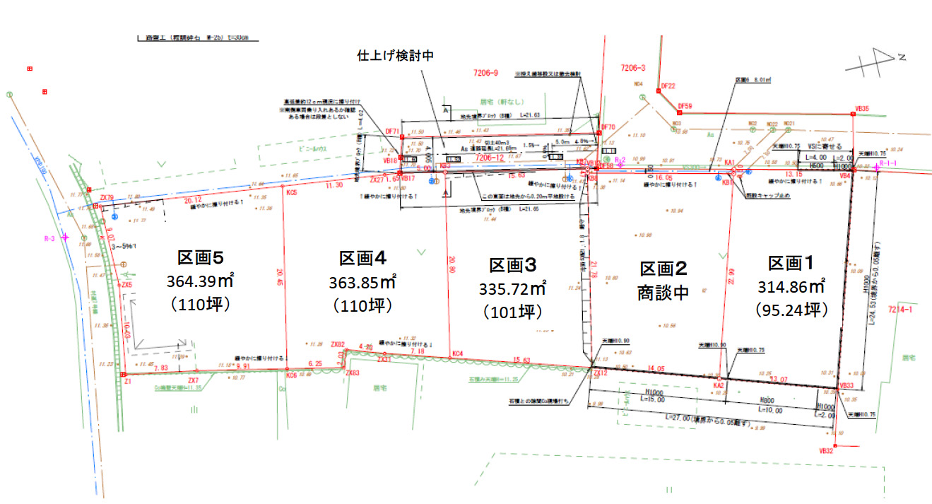 | 面積 | ①:314.86㎡(約95坪) ②:商談中 ③:335.72㎡(約101坪) ④:363.85㎡(約110坪) ⑤:364.39㎡(約110坪) |